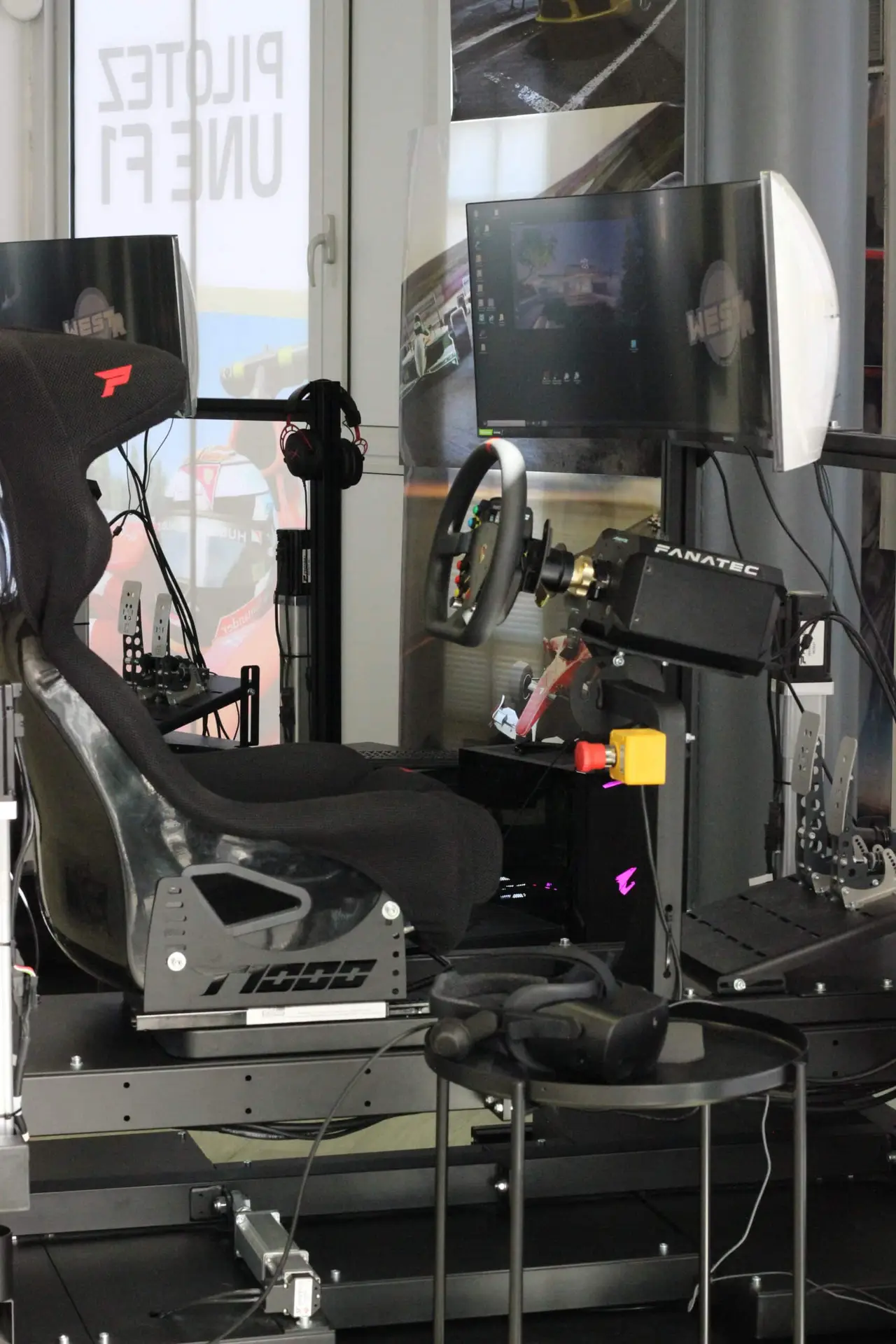 La simulation automobile atteint son apogée avec les équipements que nous fournissons : Simulateurs haute performance, Casque de réalité virtuelle et ambiance sonore travaillée !